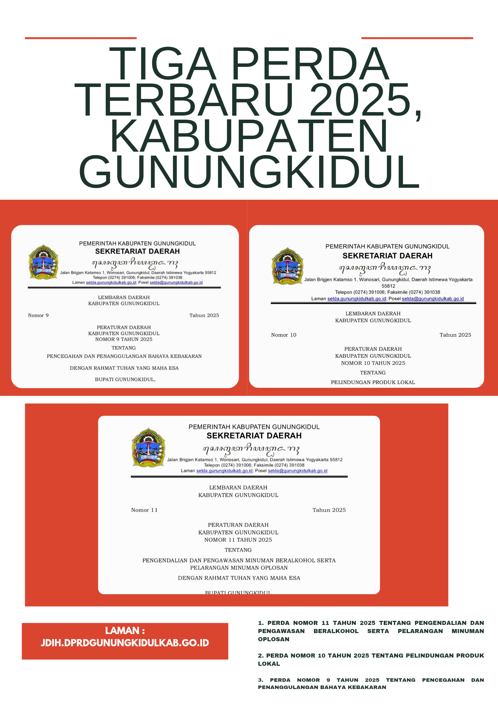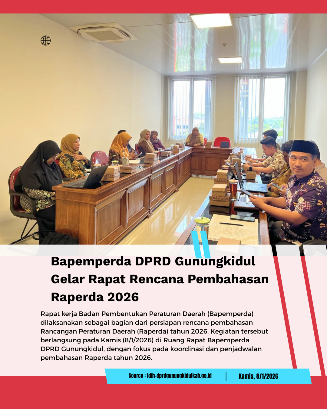Sekretariat Dewan Perwakilan Rakyat Daerah (DPRD) Kabupaten Gunungkidul menghadirkan layanan Jaringan Dokumentasi dan Informasi Hukum (JDIH) serta Perpustakaan Hukum DPRD....