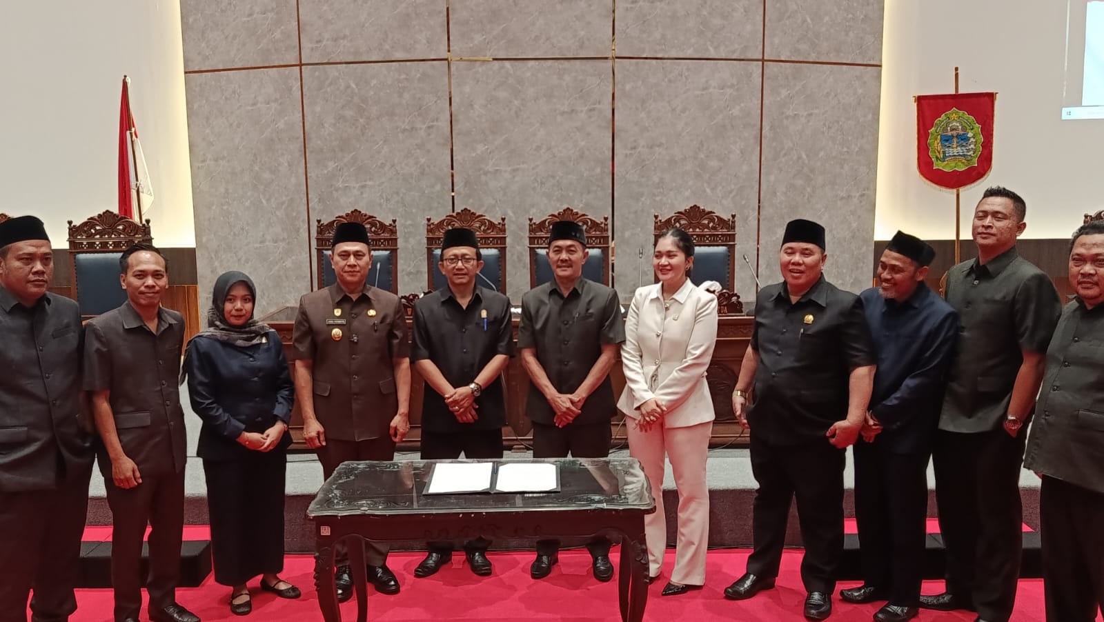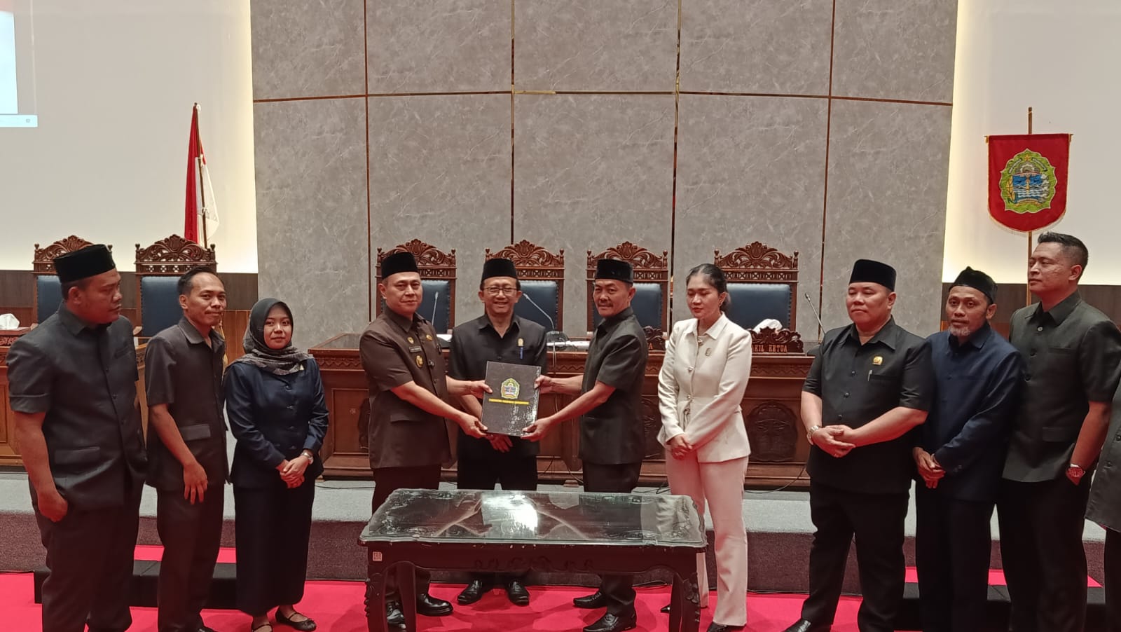 Penandatanganan Keputusan DPRD tentang Rekomendasi Pengawasan Triwulan III oleh Ketua DPRD disaksikan oleh Pimpinan DPRD dan Ketua-ketua FraksiDewan Perwakilan Rakyat....
